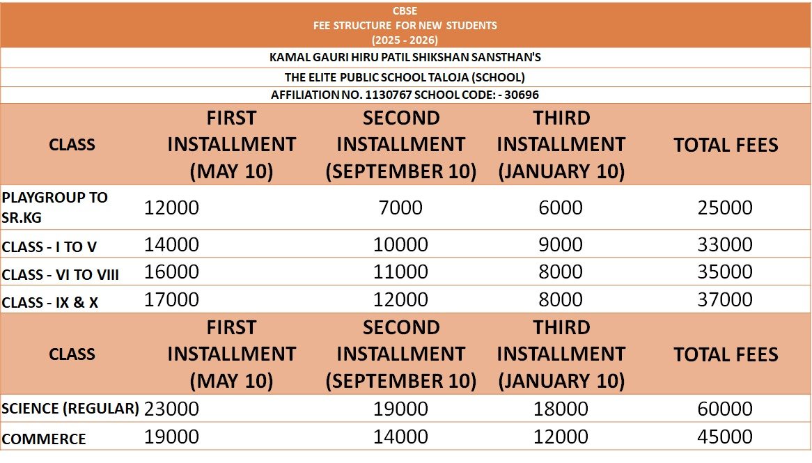 CBSE FEE STRUCTURE FOR NEW STUDENTS (2025-2026)